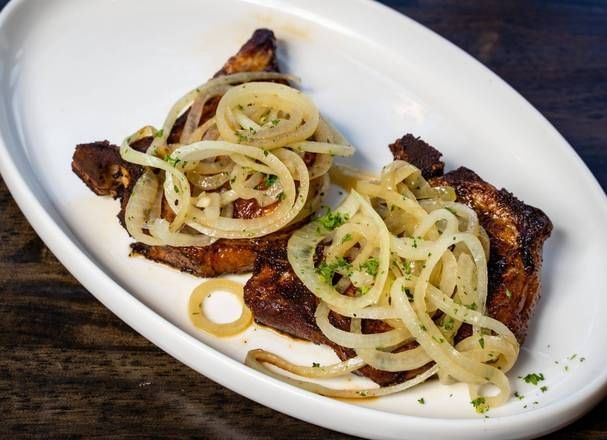 Fried Pork Chunks, Sour Orange, Caramelized Onions